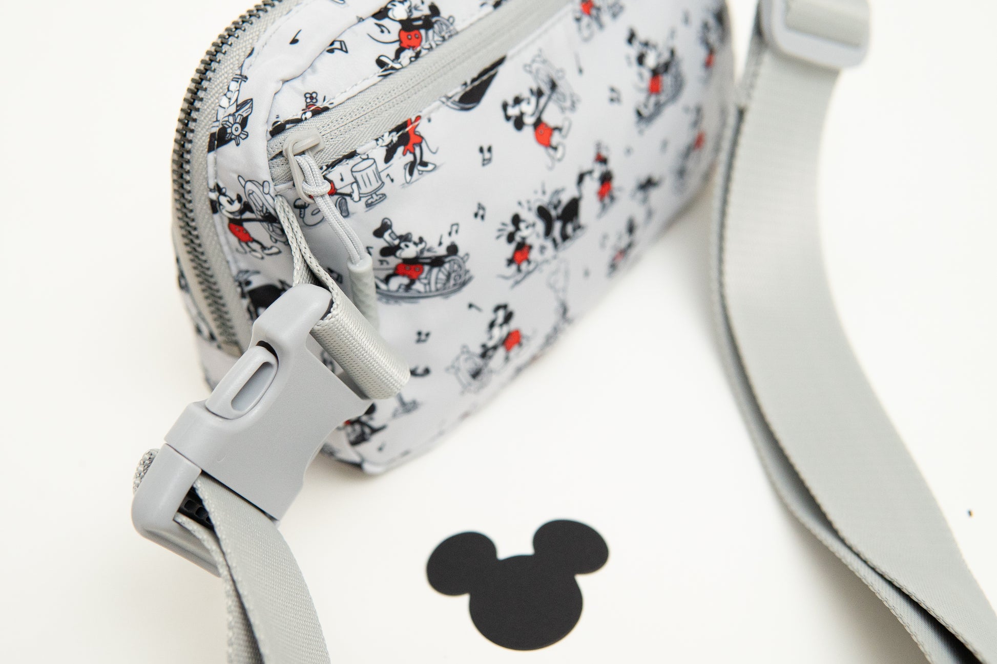 The bag can be worn crossbody or around your waist. Perfect for a day at the parks so you're not constantly carrying your essentials in your pockets or a large purse.