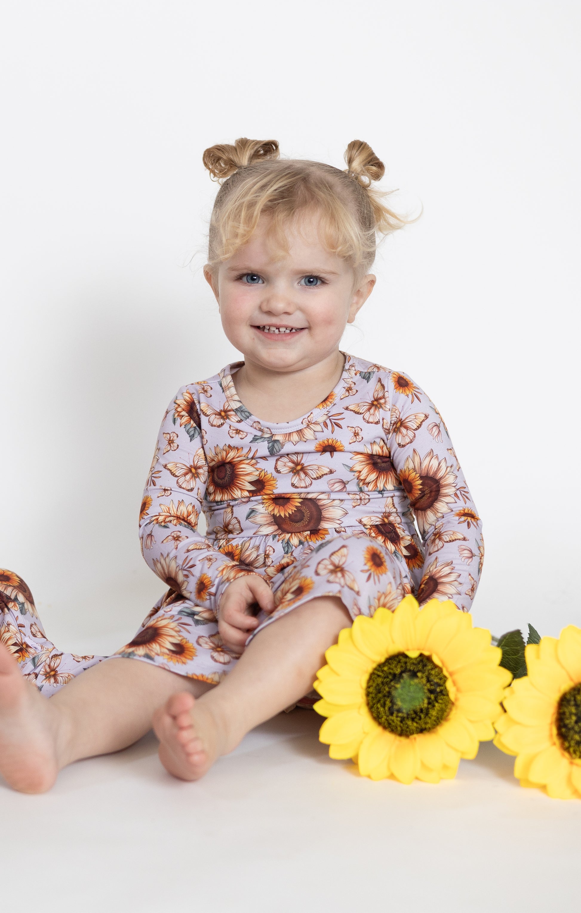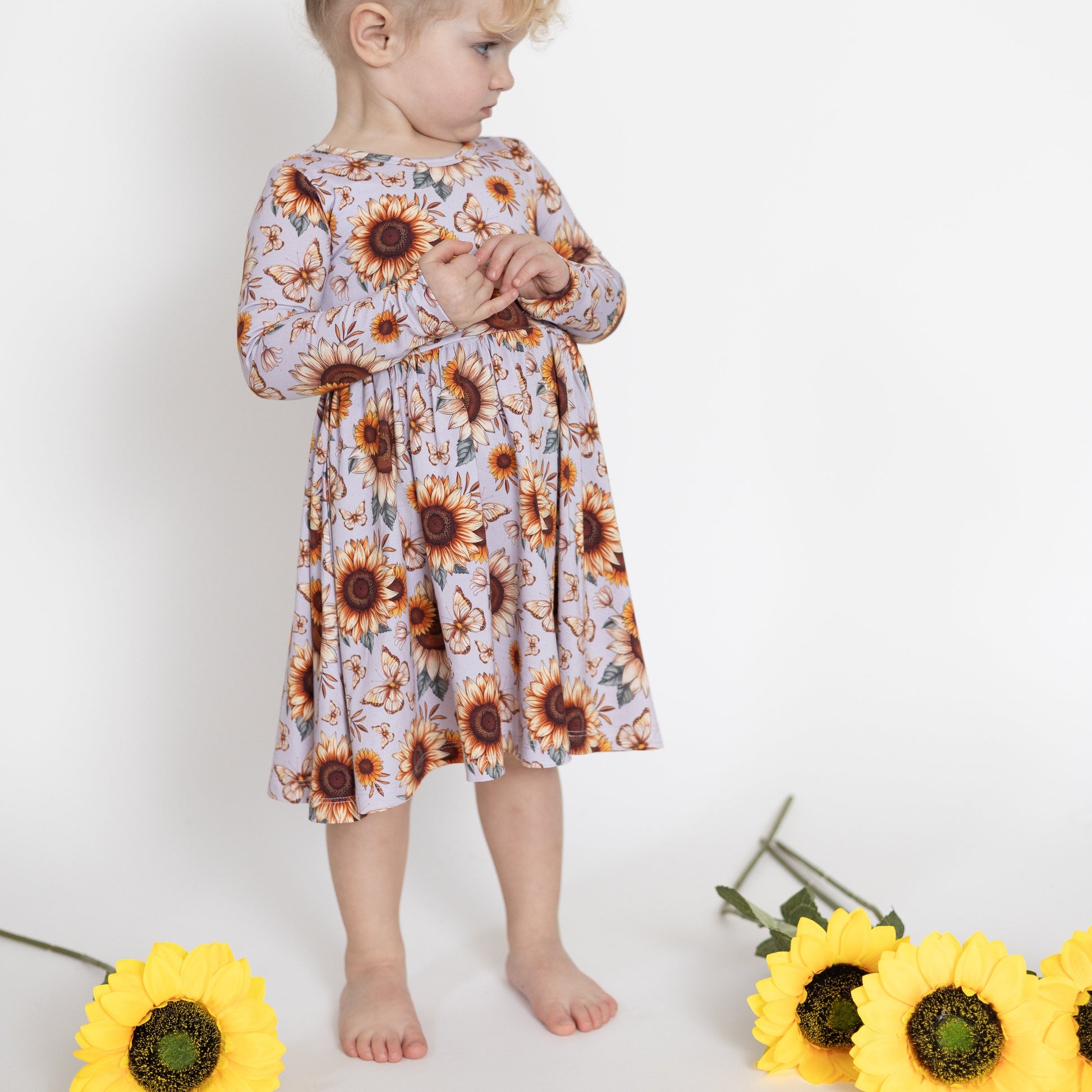 Sunflower Garden Long Sleeve Twirl Dress